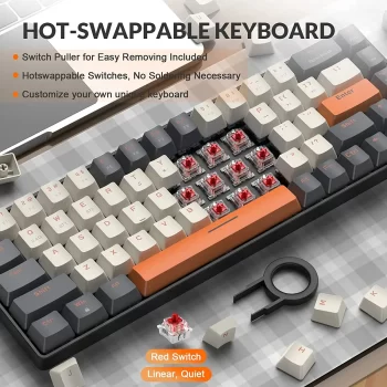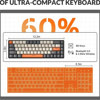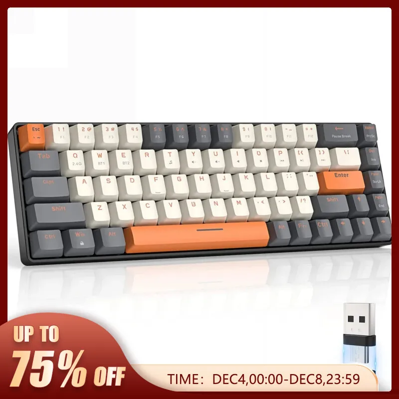 【 تصميم كلاسيكي مدمج وتصميم مريح K68 لوحة مفاتيح الألعاب الصغيرة هذه تعتمد تصميم مدمج للغاية من 68 مفتاحًا ، مع مفاتيح أسهم مستقلة ، وأكثر ملاءمة للاعبين والطابعين ، إعطاء مساحة أكبر لسطح المكتب الخاص بك. تحتوي لوحة مفاتيح الألعاب التي تعمل بالبلوتوث بدون لوحة مفاتيح الأرقام على تصميم مريح عالي الضغط ، وهو ليس من السهل التعب بعد الاستخدام على المدى الطويل.